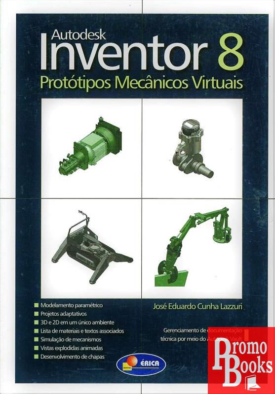 O objetivo do livro é explorar os principais recursos do Inventor 8, apresentando a tela inicial, tipos de arquivo, o ambiente e o processo de criação de rascunhos, processo de modelamento, montagens, conceitos e padrões de desenho de fabricação, gerenciamento dos arquivos de um projeto, o módulo ambiente de projeto multiusuário, como ajustar os caminhos para as pastas de um projeto, bibliotecas e arquivos. Ensina a resolver as referências entre arquivos e manter versões antigas; criar e salvar arquivos; realizar operações de check-in e check-out. Apresenta a nova ferramenta Autodesk Vault, gerenciamento de arquivos com Vault Explorer, integração do Vault com o Inventor e como fazer a manutenção do cofre, cópias de segurança e recuperação de dados.